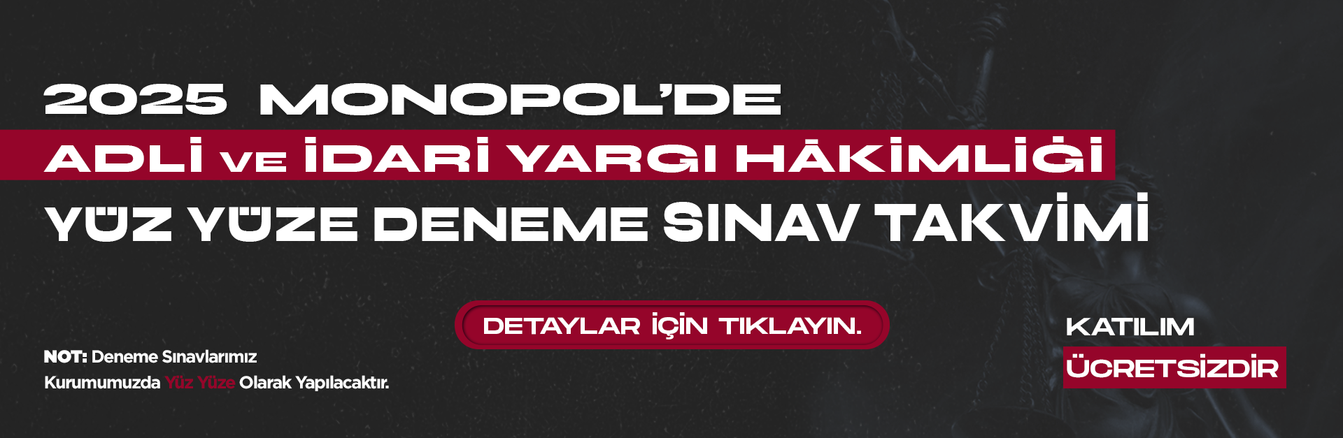 Monopol Eğitim Kurumları bünyesinde yer alan ve alanında 25 yıldır bilgi, birikim ve tecrübe edinmiş eğitimci kadrosu ile birlikte 2010 yılından bugüne sizlere Adli Yargı Hâkimliği, İdari Yargı Hâkimliği, Hukuk Mesleklerine Giriş ,KPSS A, GK-GY, Kaymakamlık ve YDS sınavlarına yönelik kaliteli eğitim olanakları sunmaktadır. Monopol Eğitim Kurumları kurulduğu günden itibaren kaliteli eğitiminden ödün vermeden her eğitim döneminde kadrosuna kattığı alanında uzman eğitimcilerle birlikte sürekli olarak güçlenmiş ve eğitim verdiği alanlarda Türkiye’nin önde gelen eğitim kuruluşlarından biri haline gelmiştir.