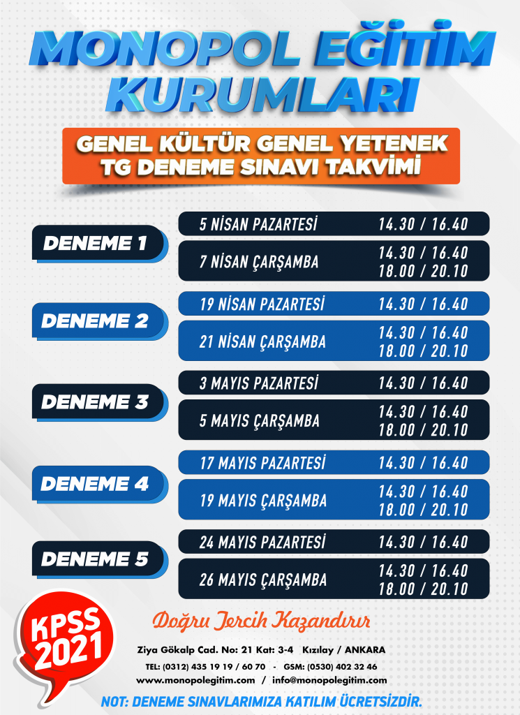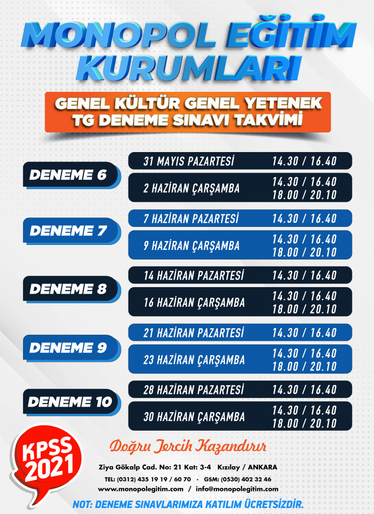 Genel Kültür Genel Yetenek Türkiye Genel Sınav Takvimi